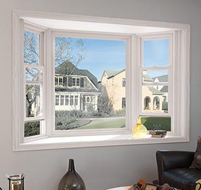 Encompass by Pella bay or bow windows offer the convenience of maintenance-free vinyl frames.